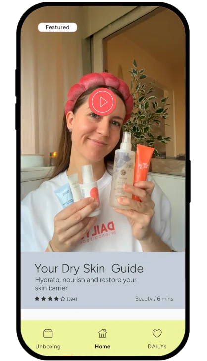 In our app you unbox your box, get to know every product, and receive expert guides, tutorials and inspiration for beauty, self care and wellness – all month long